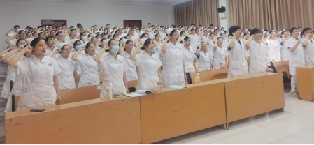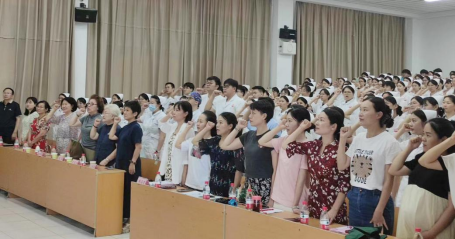 在实地动员宣誓环节,同学们整齐站立,庄严宣誓。他们表示将严格遵守实习纪律,认真履行实习职责,以高度的责任心和敬业精神完成实习任务。他们的誓言铿锵有力,展现了护理学院学子的良好风貌和坚定信念。