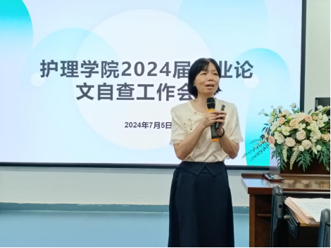 为进一步提升护理学院学生毕业论文质量,护理学院于2024年7月5日上午8:30在笃行楼三楼护理实验室示教室开展了2024届本科毕业论文自查工作会议。参加本次会议的有护理学院执行院长王秀岚、副院长黄洛莹等47名教师,会议由黄洛莹副院长主持。