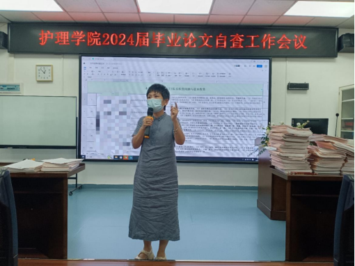 最后,王院长对本次自查工作进行了总结,并对老师们发现的问题提出了整改建议。她表示,护理学院将进一步加强对学生论文的指导和管理,确保学生能够按照学术规范撰写论文,并在规定时间内更好保质保量地毕业论文的撰写工作。同时,她也感谢所有参与本次论文自查工作的老师们,感谢她们的辛勤付出和无私奉献。
