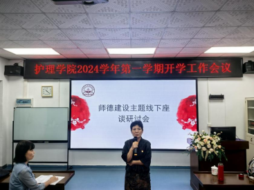 9月6日上午,护理学院在笃行楼三楼护理实验室会议室召开师德建设主题线下座谈研讨会暨2024学年第一学期工作会议,护理学院执行院长、党总支书记王秀岚教授、副院长黄洛莹老师、党总支副书记钟婉老师、办公室主任周玲老师及护理学院全体教职工参加了本次会议。会议由周玲主任主持。本次会议旨在加强师德师风建设,提升教学质量,并为新学期的工作做出规划和部署。