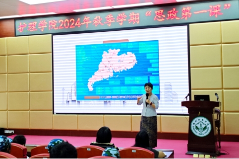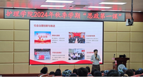 为启发大一新生对护理职业的了解与认识,激发学习责任感与热情,引领他们迈向卓越的护理人才之路。2024年9月24日下午,护理学院于教学楼D101(主会场)和D204(分会场)举办了2024年秋季学期“思政第一课”,由执行院长王秀岚主讲。