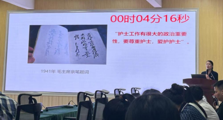 黄珍霞同志的微党课《守仁爱初心 传红军精神》,从红军卫生员在革命中坚守仁爱初心、舍己为人的故事,到现代护理的发展,结合自身在护理教学岗位中的所见、所闻、所感,用饱满的情绪和真实的情感,深刻诠释护理教育和临床护理工作者对于“敬佑生命、救死扶伤、甘于奉献、大爱无疆”的崇高职业精神,以及对“不怕困难、勇攀高峰、始终把人民放在心中”的红军精神的担当和传承。