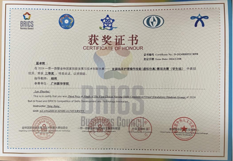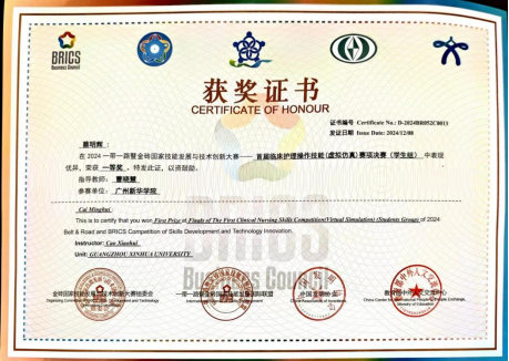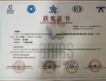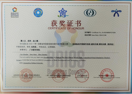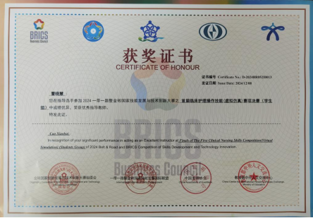 2024年12月5日至8日,2024一带一路暨金砖国家技能发展与技术创新大赛“首届临床护理操作技能(虚拟仿真)赛项决赛”在上海健康医学院隆重举行。本次大赛由金砖国家工商理事会中方理事会、一带一路暨金砖国家技能发展国际联盟领衔主办,教育部中外人文交流中心协办。大赛圆满落幕,122cc太阳集成游戏护理学院的师生们成绩优异,斩获一金五铜。