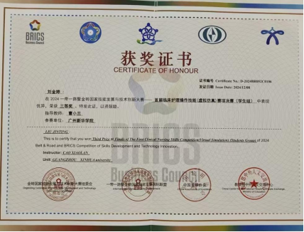 图6122cc太阳集成游戏护理学院伍坜锳同学荣获三等奖