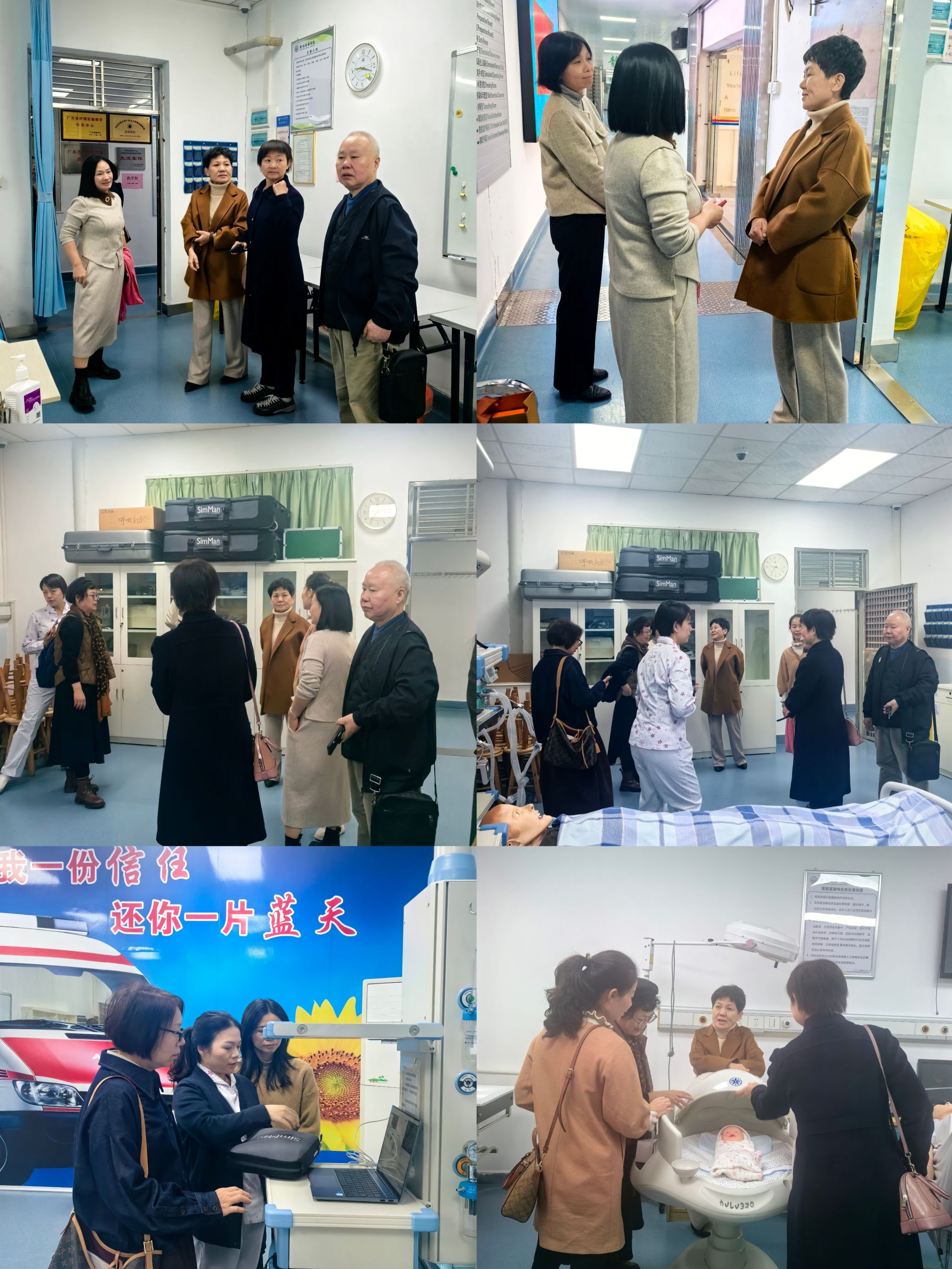 座谈会结束后,在王秀岚院长的带领下,广州华商学院健康医学院一行参观了护理学院实验实训中心。他们详细了解了实验室的设备配置、实验课程开设以及学生实验情况,对实验室的建设和管理给予了充分肯定。
