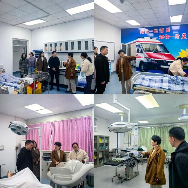 会后,在王秀岚院长的陪同下,雷浩强副院长一行参观了护理学院实验实训中心,实地考察了实验室设备配置、实验课程开设及学生实践教学情况,他们对护理学院的实验设施、规范的管理模式及实践教学成果给予了充分肯定。