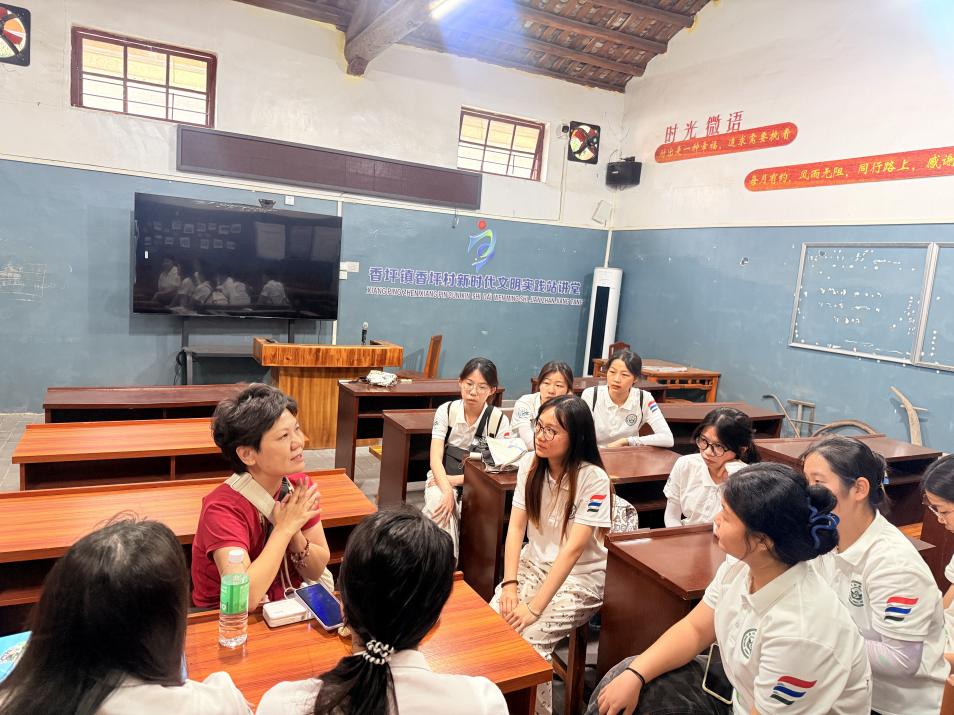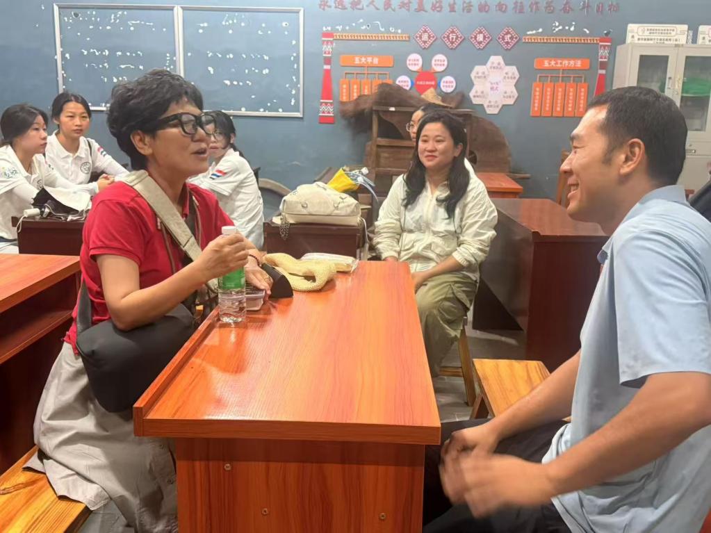 在对当地医疗卫生状况进行调研的同时,王秀岚院长也深入了解了香坪镇的党史以及瑶乡文化。香坪镇党委委员、武装部部长唐城同志向她系统地介绍了当地的党史故事以及瑶乡文化的传承与发展,内容涵盖了古老的瑶族传说、独特的民俗风情,以及现代文化保护与创新的实践。王秀岚院长专注地聆听,并不时提问,展现了对瑶乡文化传承的深切关注。她表示:“瑶乡文化是香坪镇的珍贵瑰宝,兼具深厚的历史底蕴与独特的魅力,值得我们全力守护与传承。”