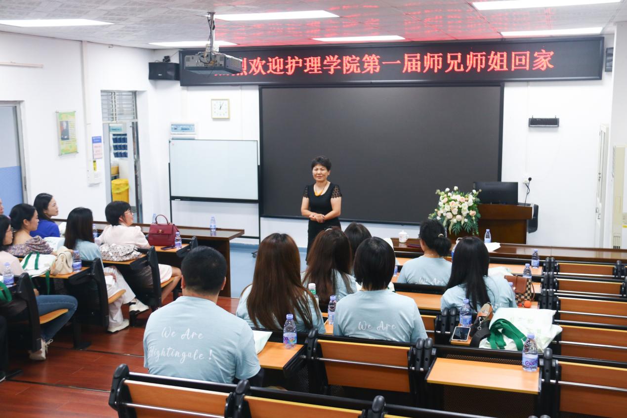 护理学院执行院长王秀岚教授对校友们的归来表示最热烈的欢迎。她深情回顾了学校办学的发展情况,详细介绍了护理学院在学科建设、人才培养、科学研究、社会服务等方面取得的跨越式发展和成就。她表示大家在各自岗位上取得的辉煌成绩,就是对母校教育质量的最好印证。她还殷切嘱托各位校友,继续关注和支持母校的发展,常回家看看,为学院的建设建言献策,同时祝愿大家在未来的事业和生活中再创佳绩。