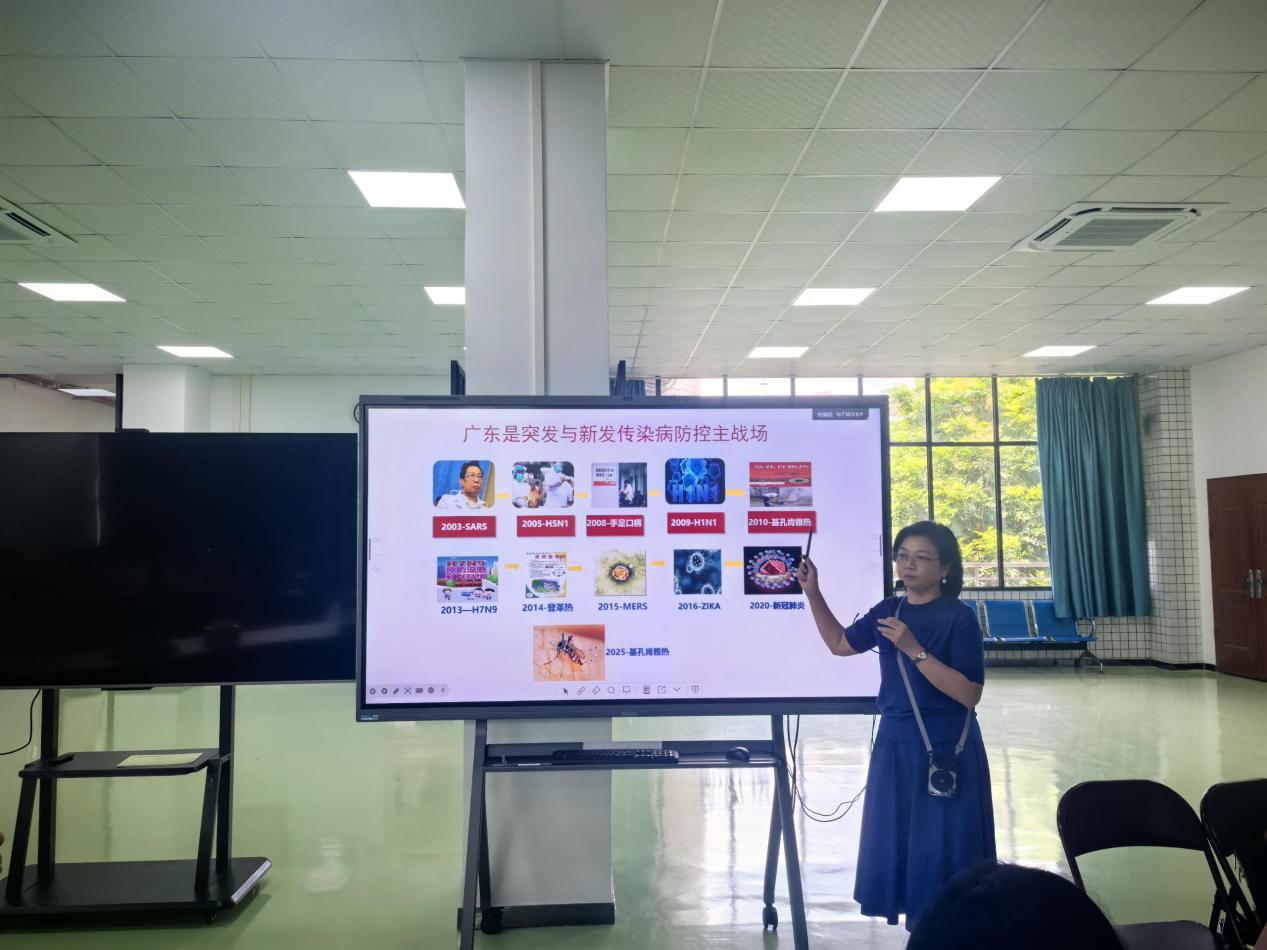 在读书报告分享会中,邓小玲教授结合其担任广东省疾病预防控制中心所长的一线工作经历,向在场教职工系统分享了突发与新发传染病时实验室的应对经验与实践心得。