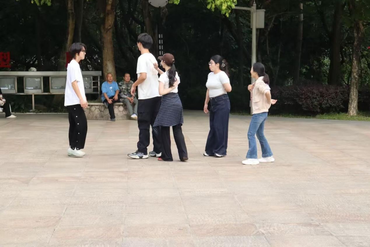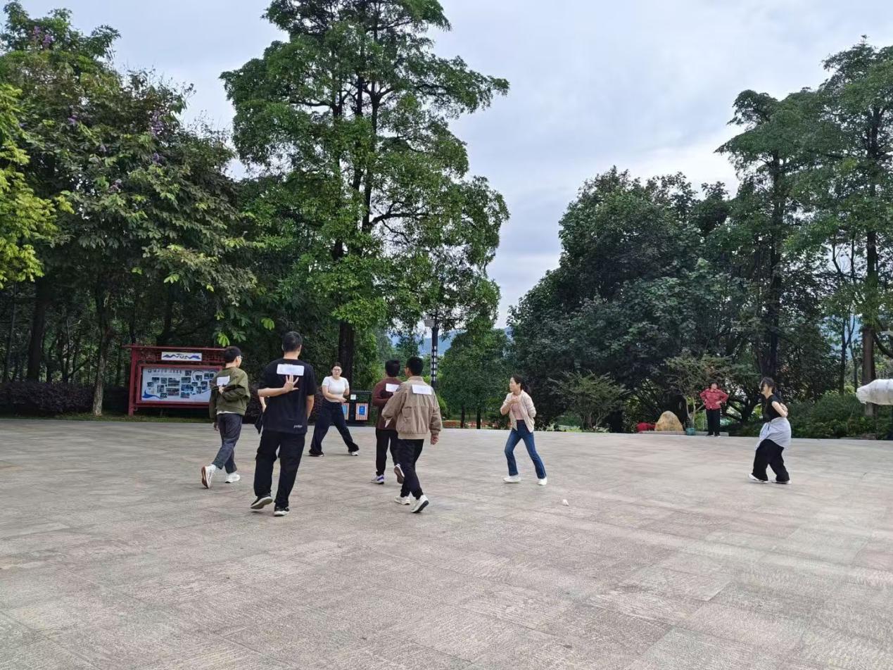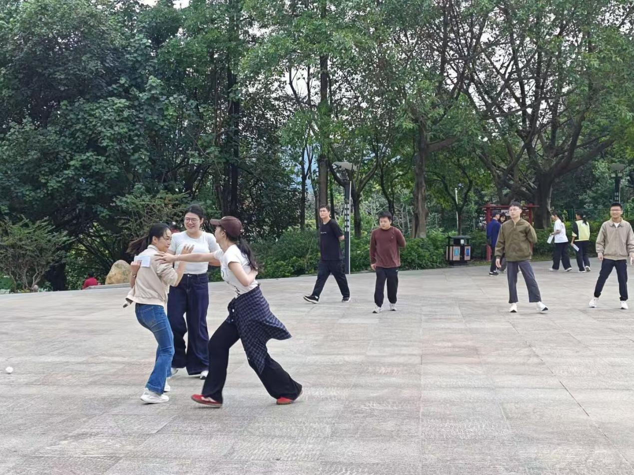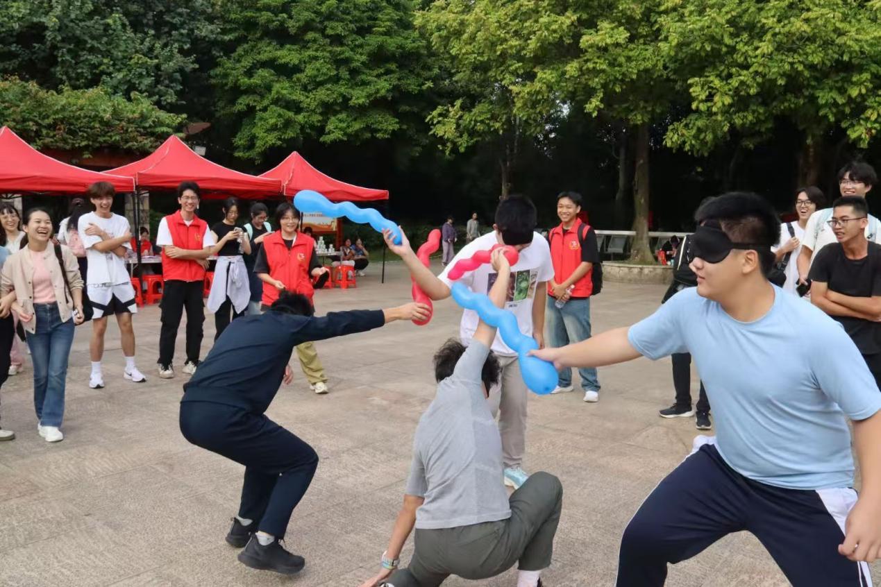 上午8时,参与师生准时在A栋架空层集合,志愿者有序分发矿泉水与活动卡片,细致讲解登山路线及安全注意事项。全员集结后,队伍统一前往凤凰台开启热身环节。“撕名牌”中队员灵活攻防、团队联动,“盲人剑客”凭队友语音指引精准出击。各游戏点志愿者分工明确,分别负责规则讲解、计时记录、秩序维护与盖章,完成游戏的小组均获团队章,为登山环节夯实协作基础。