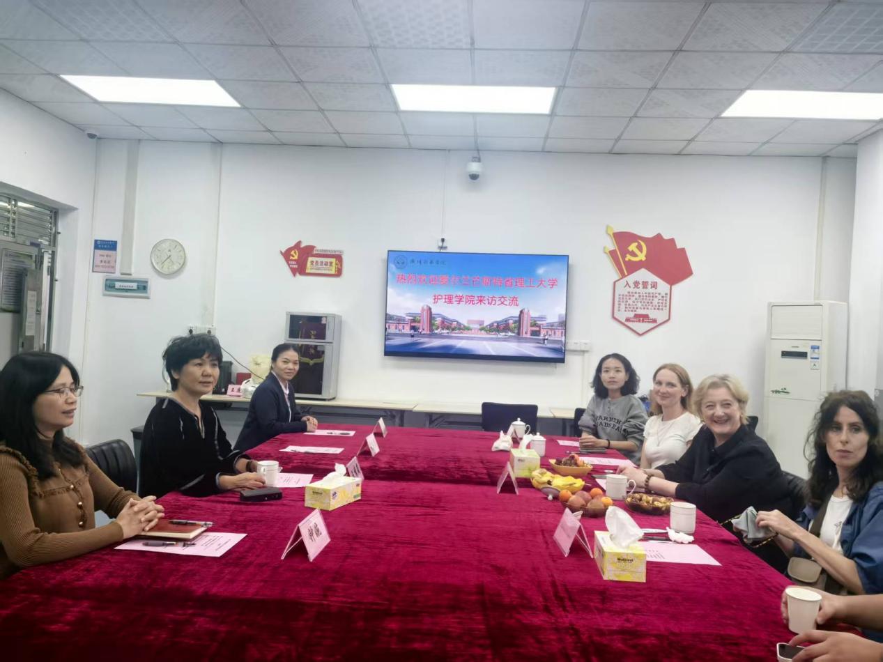 2025年11月13日下午,爱尔兰芒斯特省理工大学护理学院代表团一行莅临122cc太阳集成游戏护理学院,开展交流座谈并举办专题讲座。122cc太阳集成游戏护理学院党总支书记、执行院长王秀岚,副院长黄洛莹,党总支副书记钟婉,实验实训中心主任黄廷芬等出席座谈会。会议由王秀岚院长主持。