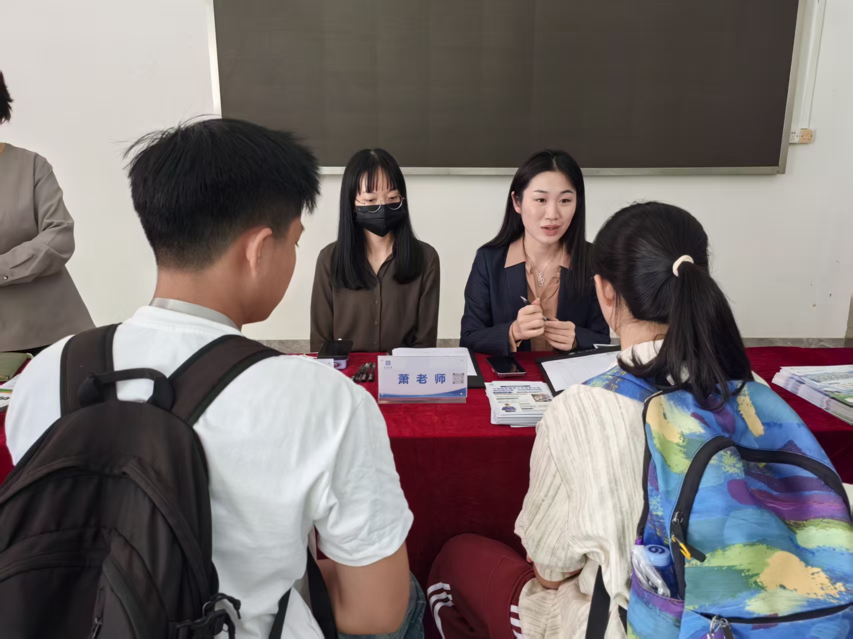 图 11:笃行楼一楼海外境外就业机构咨询台工作人员为学生家长答疑