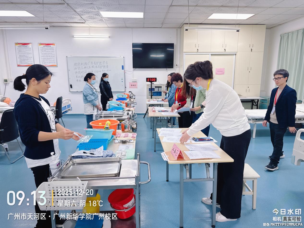 护理学院作为广东省护理学会医疗护理员的评价机构考点,此次考评工作,严格遵循国家及行业相关标准,秉持 “严谨、公正、专业” 的原则,构建全流程规范化考评体系。考评前期,学院组织专家团队深入研读医疗护理员国家职业技能标准,结合临床实际需求,制定涵盖理论知识、实操技能两大模块的考评细则,确保考评内容贴合岗位实际。考评期间,学院派出资深“双师型”教师与临床护理专家共同担任考评员,设立多环节质量把控机制:实操考核划分生活照护、基础护理等多个项目,考评专家依据统一评分标准现场打分,逐项核对操作细节。理论考试采取闭卷形式,全程专人监考、严格保密;同时,建立考评档案管理制度,对30名参评人员的考评资料进行分类归档,做到 “一人一档、有据可查”,确保考评结果真实有效。