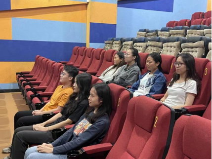 在活动前夕,主持人吴瑶在支部群里发布了主题活动开展的通知,简述了活动的内容与目的,组织支部成员积极参与。10月20日晚,吴瑶同学带领同学们前往影院观看电影。