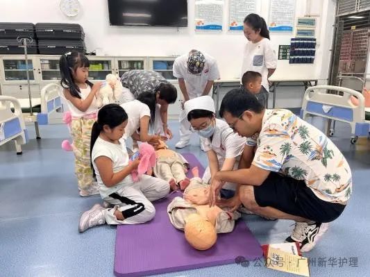 CPR和AED项目由莫谈健老师与黄珍霞老师进行培训,经过他们的专业讲解,参与者们对在心脏骤停等紧急状况下如何精准施行心肺复苏术和AED操作的关键步骤与要点有了深刻且明确的认识。大人们和孩子们都亲身参与了模拟人心肺复苏的模拟演练,他们全神贯注、热情高涨,充分展现了对这项生命拯救技能的认真态度与高度投入。